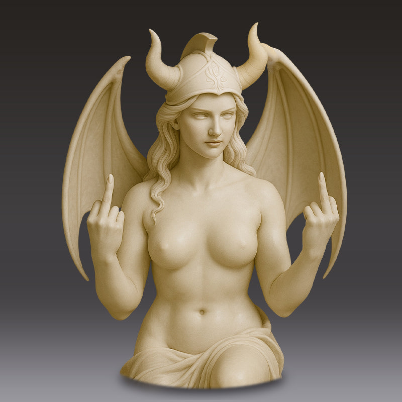 In this sculpture, the classical image of Athena is juxtaposed with a modern, satirical gesture, creating an undeniable tension. She remains silent, yet responds to the world with a resolute stance: wisdom can be calm, strength can be satirical, and rebellion can be elegant.