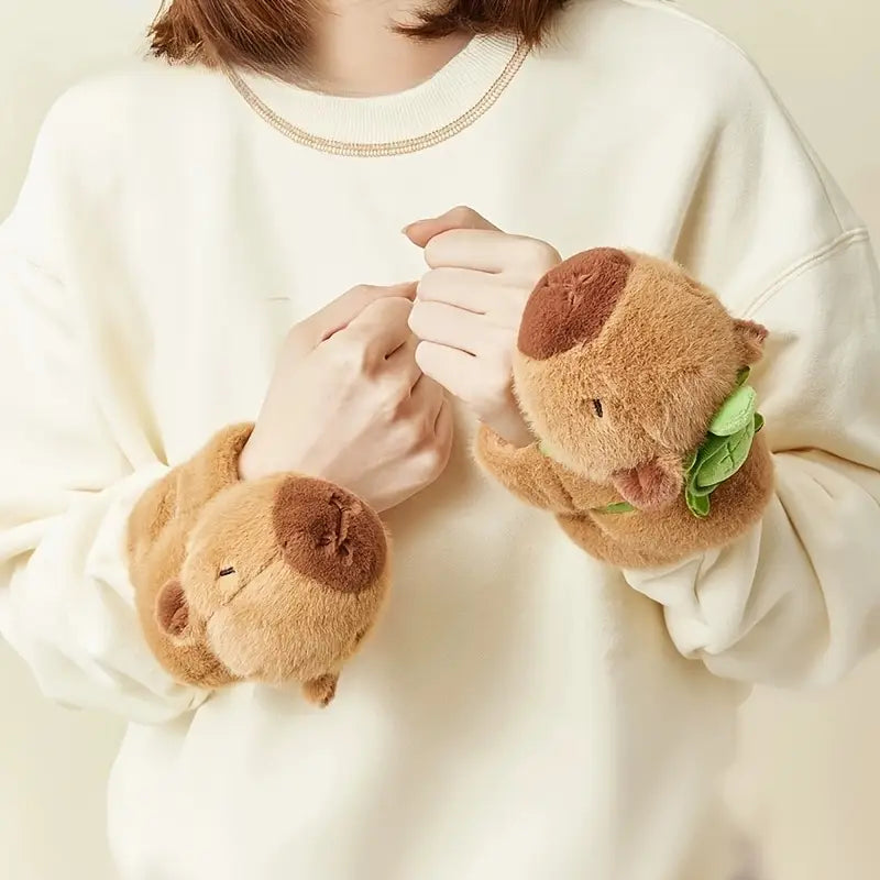 Capybara and Turtle Plush Wristband Set