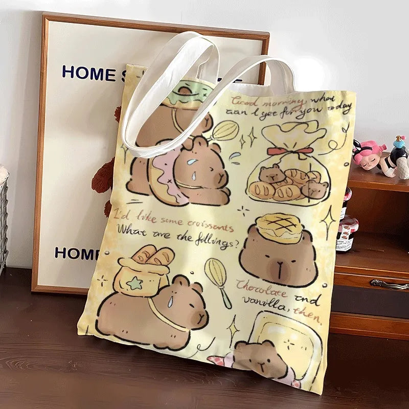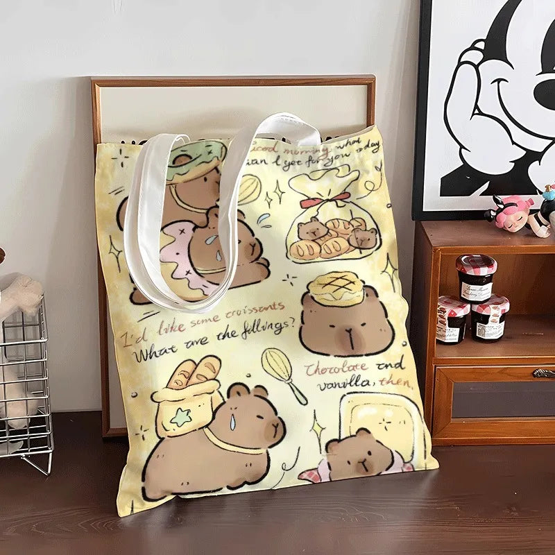 The Capybara Canvas Bag features a captivating design inspired by the cute and charming capybara, a large rodent native to South America.