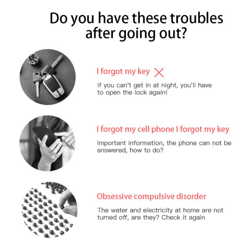 - Home time management timer to go out reminder can be hung key with a hook (without battery).