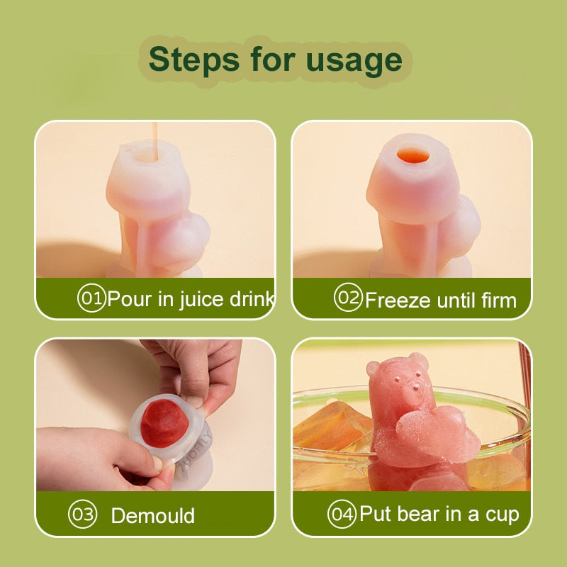 - Just pour the drink into the mold, freeze it in the refrigerator for 4 hours to make the drink completely frozen, peel down the sides, then push from the bottom, and the lovely bear can be extracted. It would be best if you were gentle/careful with the head to ease the ears. Simple operation, convenient demoulding, and easy cleaning.