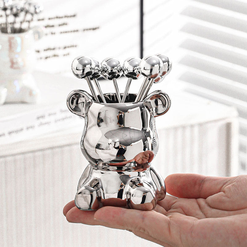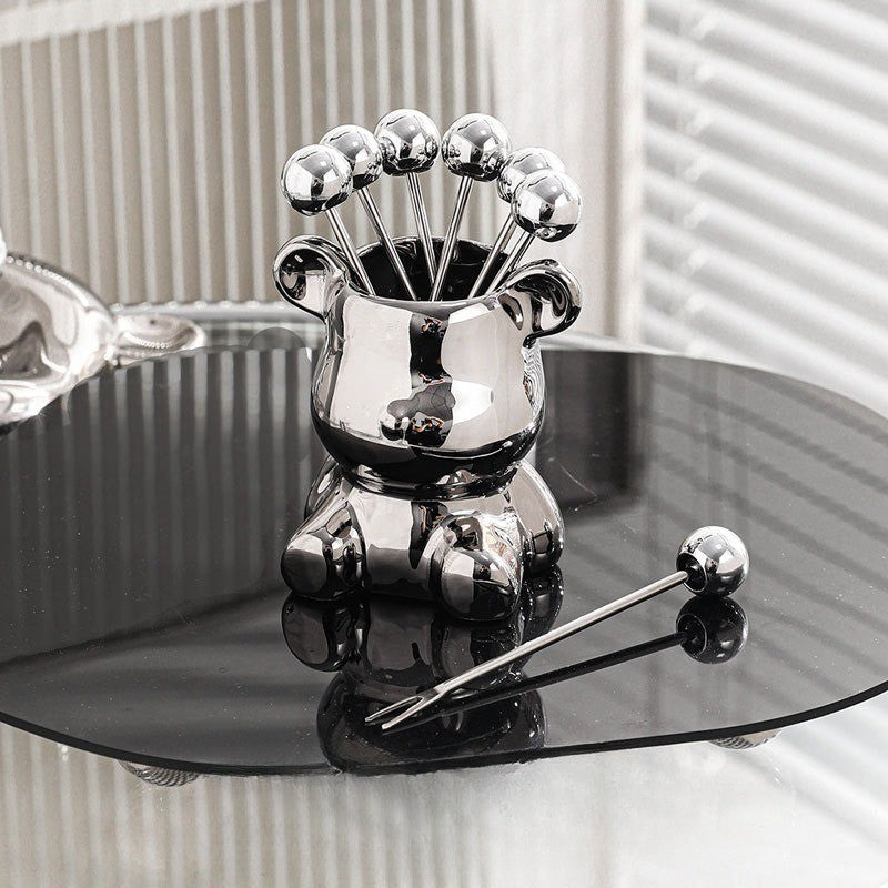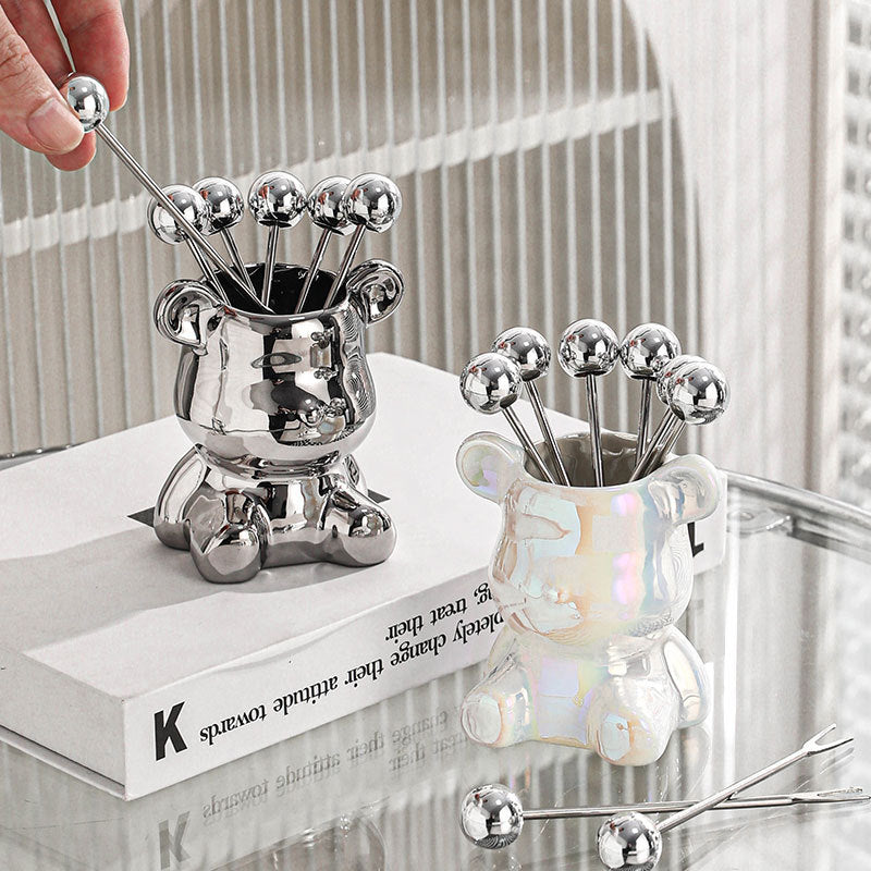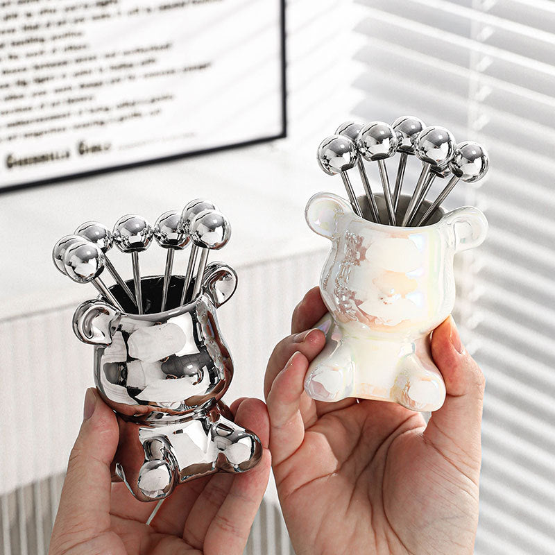 The Nordic Tiny Bear Food Fruit Holder is the perfect way to keep your little one's food and snacks fresh and within reach. The cute and cuddly bear design will surely bring a smile to your child's face, while the handy fruit holder is perfect for storing apples, bananas, etc. The fruit holder can also be used as a utensil holder, making mealtime fun and easy. The Nordic Tiny Bear Food Fruit Holder is durable and sturdy, so it's sure to last through many mealtimes.