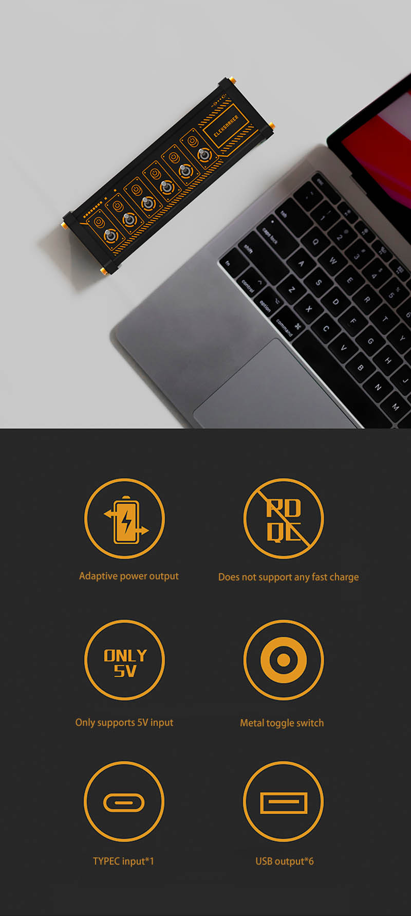 - Adaptive power output does not support fast charging; it only supports 5V input, Type-C input, and USB output*6.